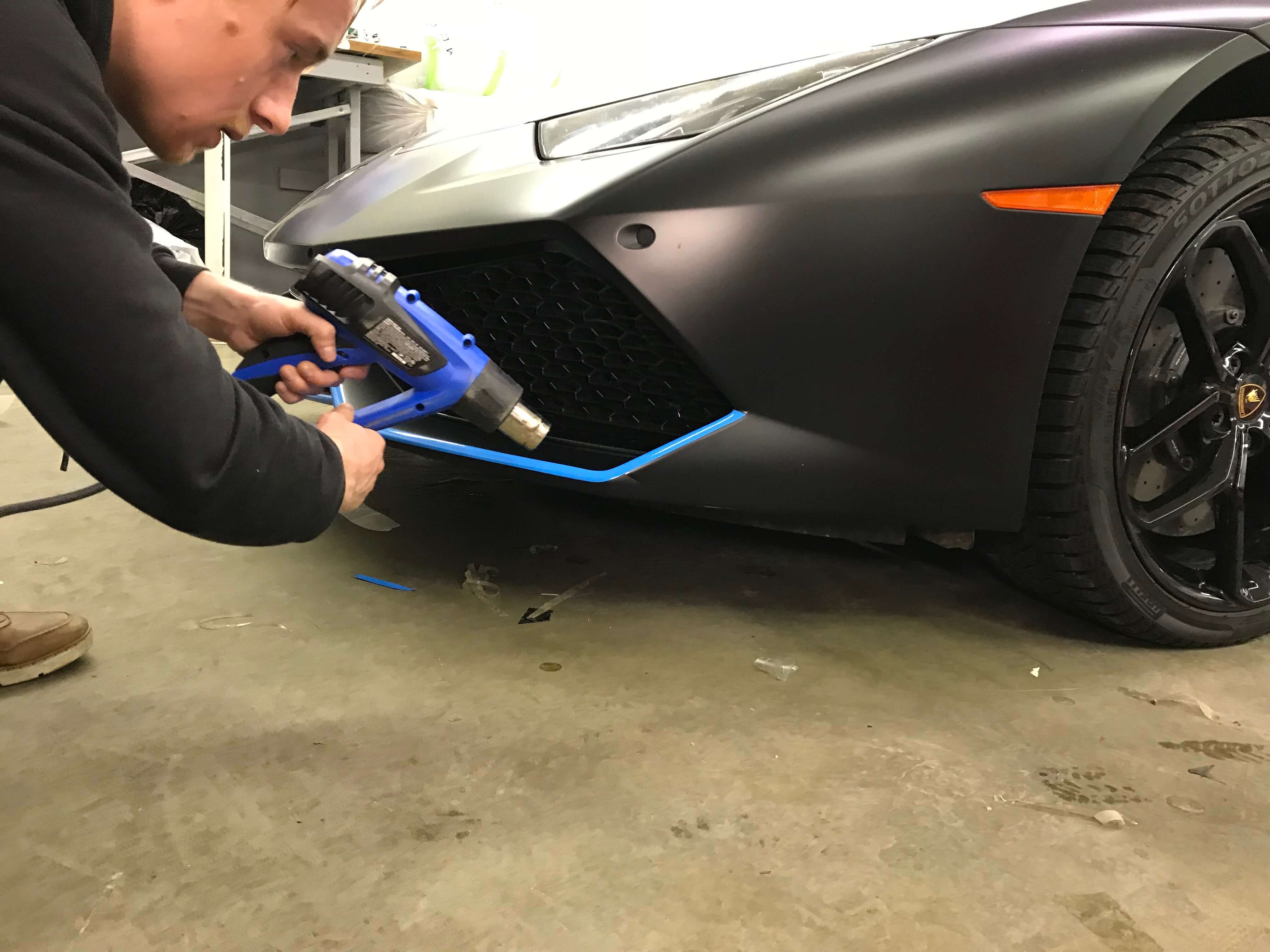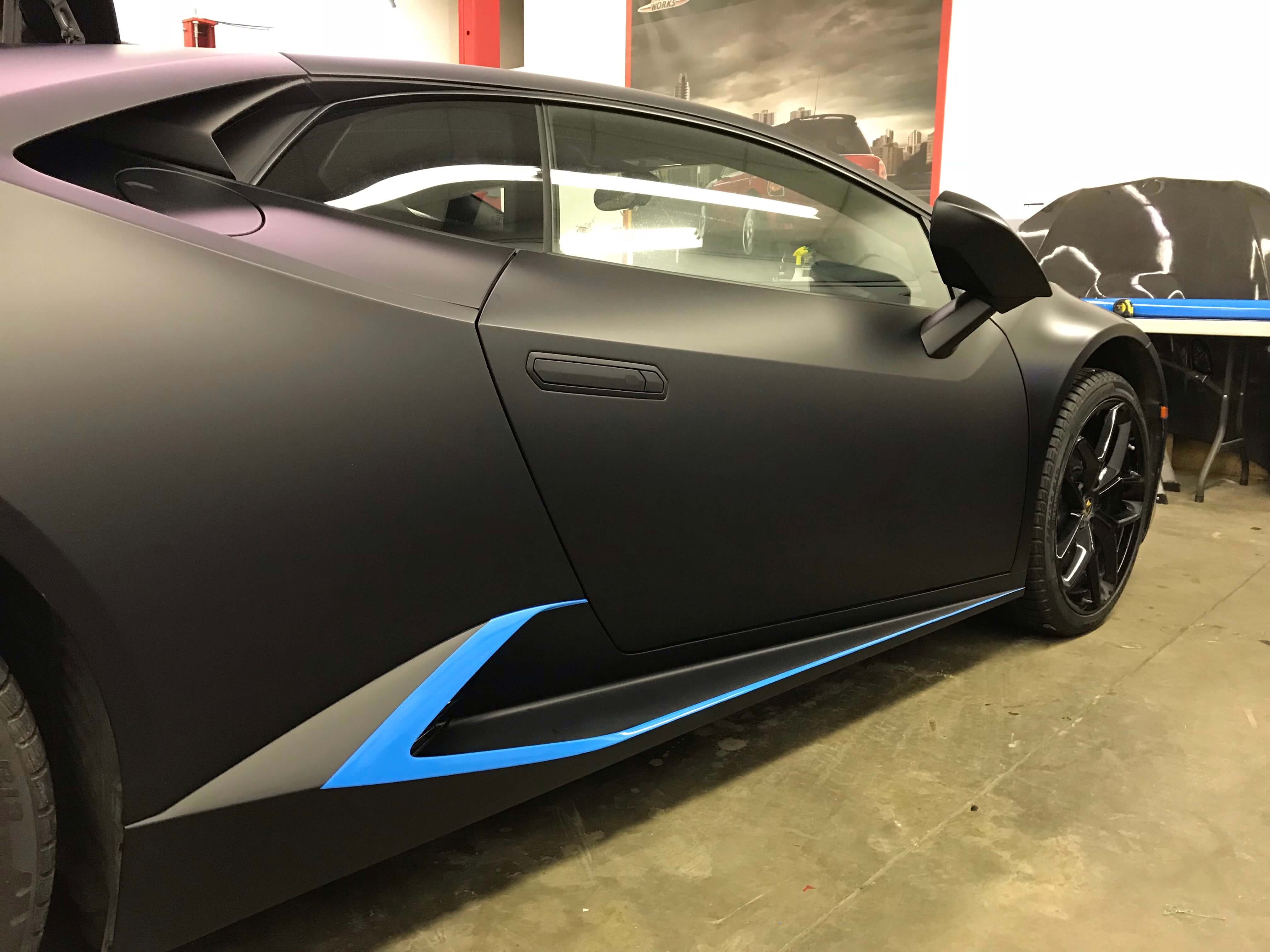 A Lamborghini Huracan with custom accent wraps highlighting the car’s aggressive body lines. Rather than a full colour change, this project used strategic vinyl placement to enhance the factory design with contrasting colours and finishes. Exotic cars require precision installation around complex curves and air intakes.