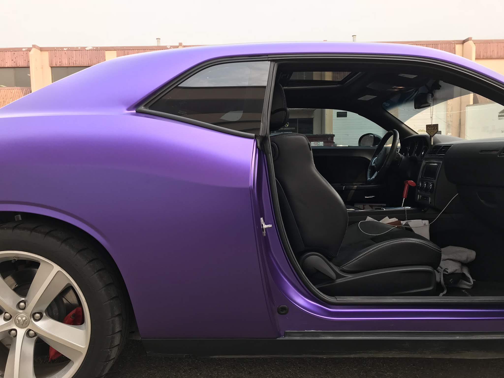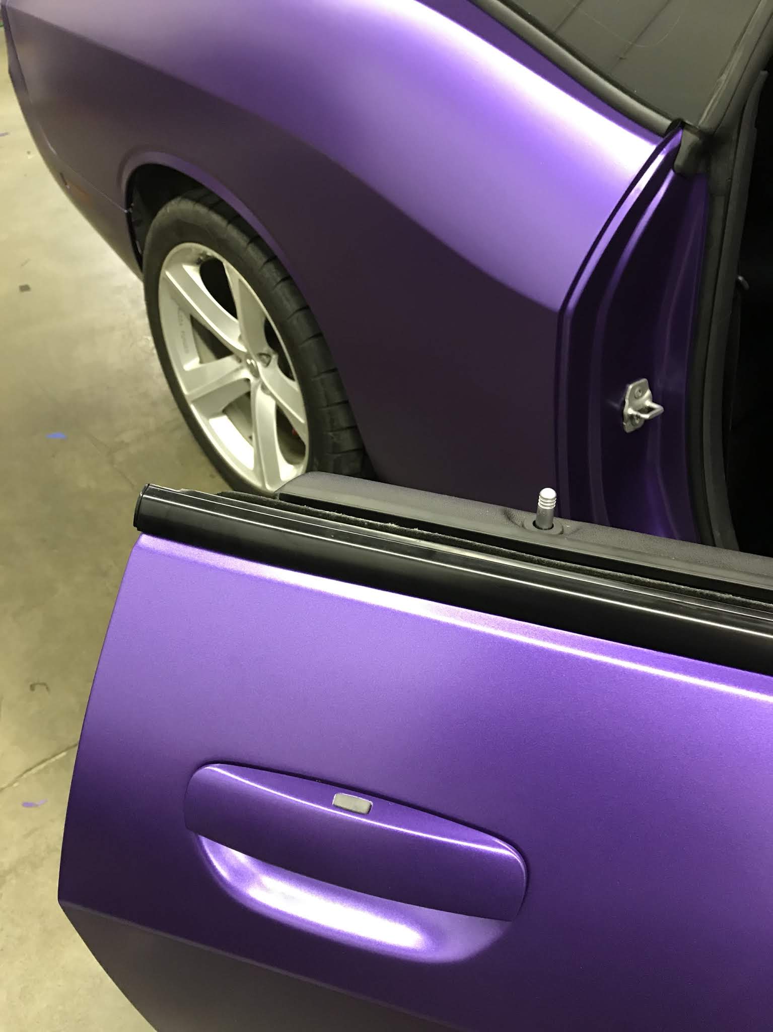 This Dodge Challenger was transformed with a full Satin Metallic Purple wrap. The Challenger’s muscular body lines are perfectly suited for a bold colour change, and the satin purple finish gives it an aggressive, modern look that turns heads at every car meet.